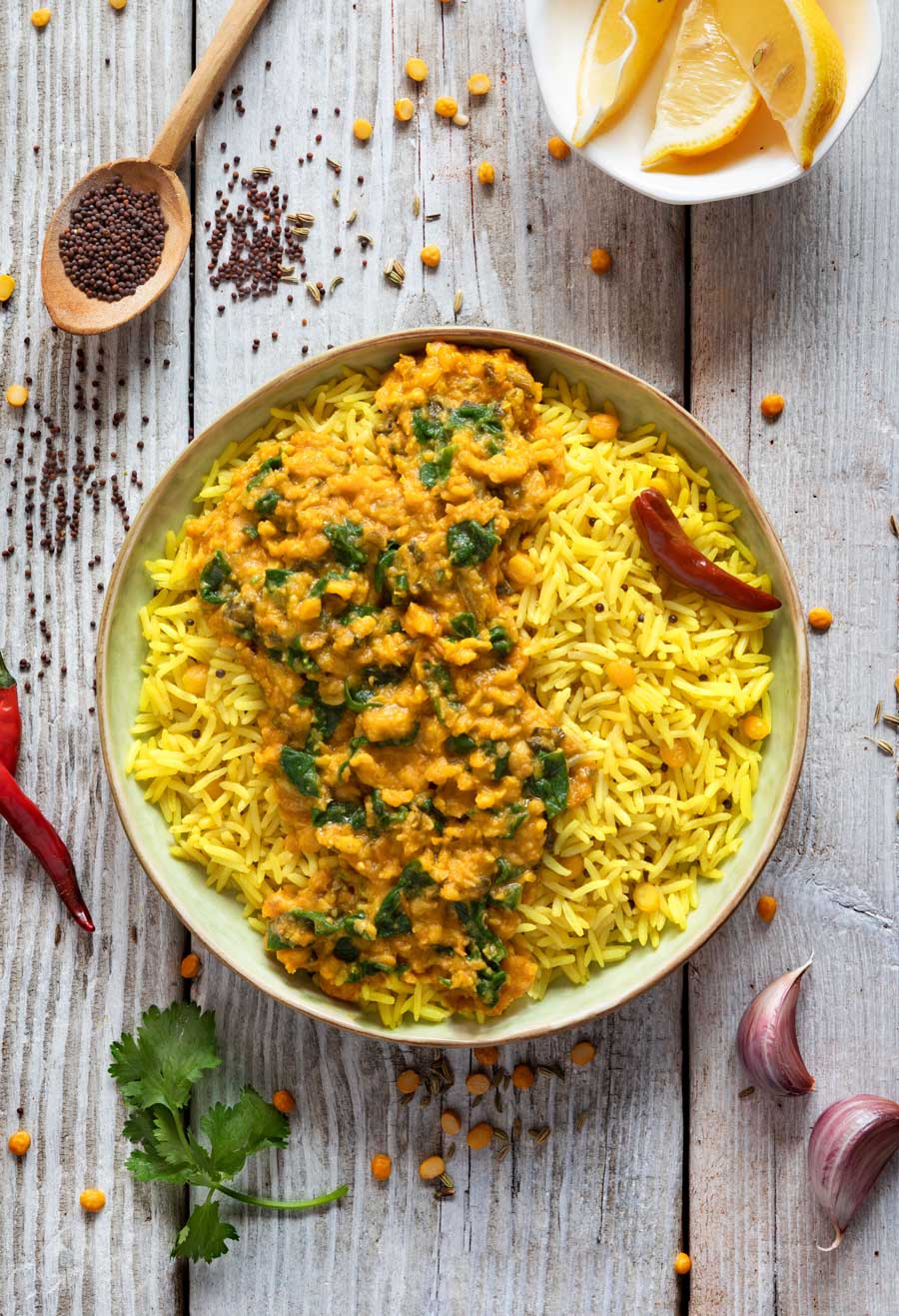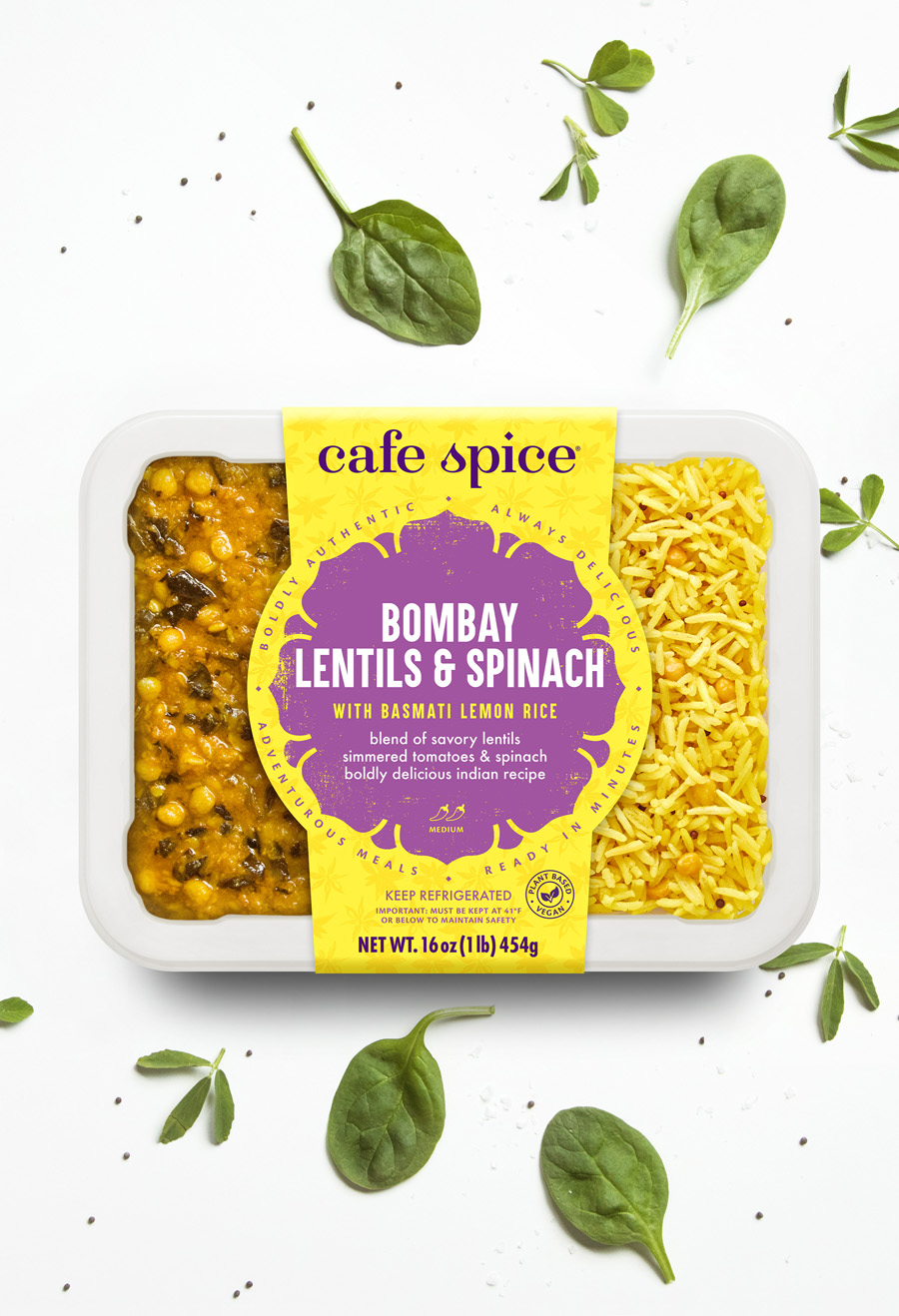 Our Bombay Lentils & Spinach is the perfect hearty combination of tender lentils and an aromatic slow-simmered sauce, mixed with spinach. We pair this Chef-crafted dish with Basmati rice that’s infused with lemon juice, turmeric, tempered mustard seeds, and lentils.