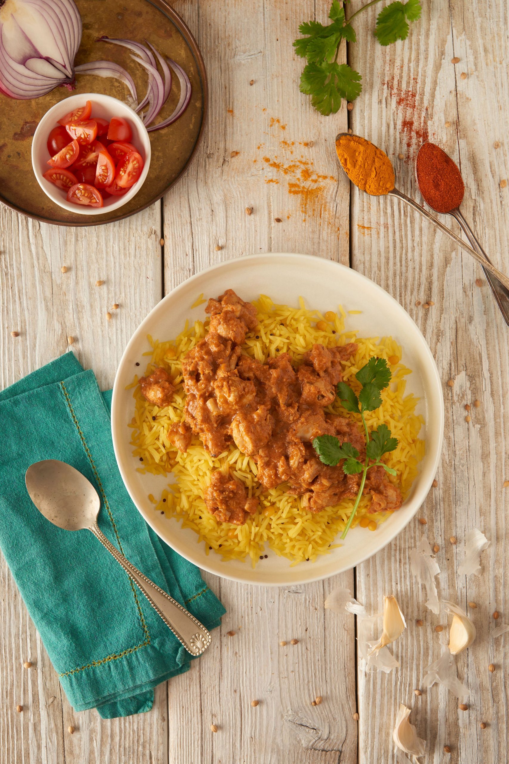 Our Chicken Curry is delicious, flavorful, and comforting. Tender pieces of chicken are braised in our luscious North Indian-style onion and tomato curry sauce. We pair this Chef-crafted dish with Basmati rice that’s infused with lemon juice, turmeric, tempered mustard seeds, and lentils.