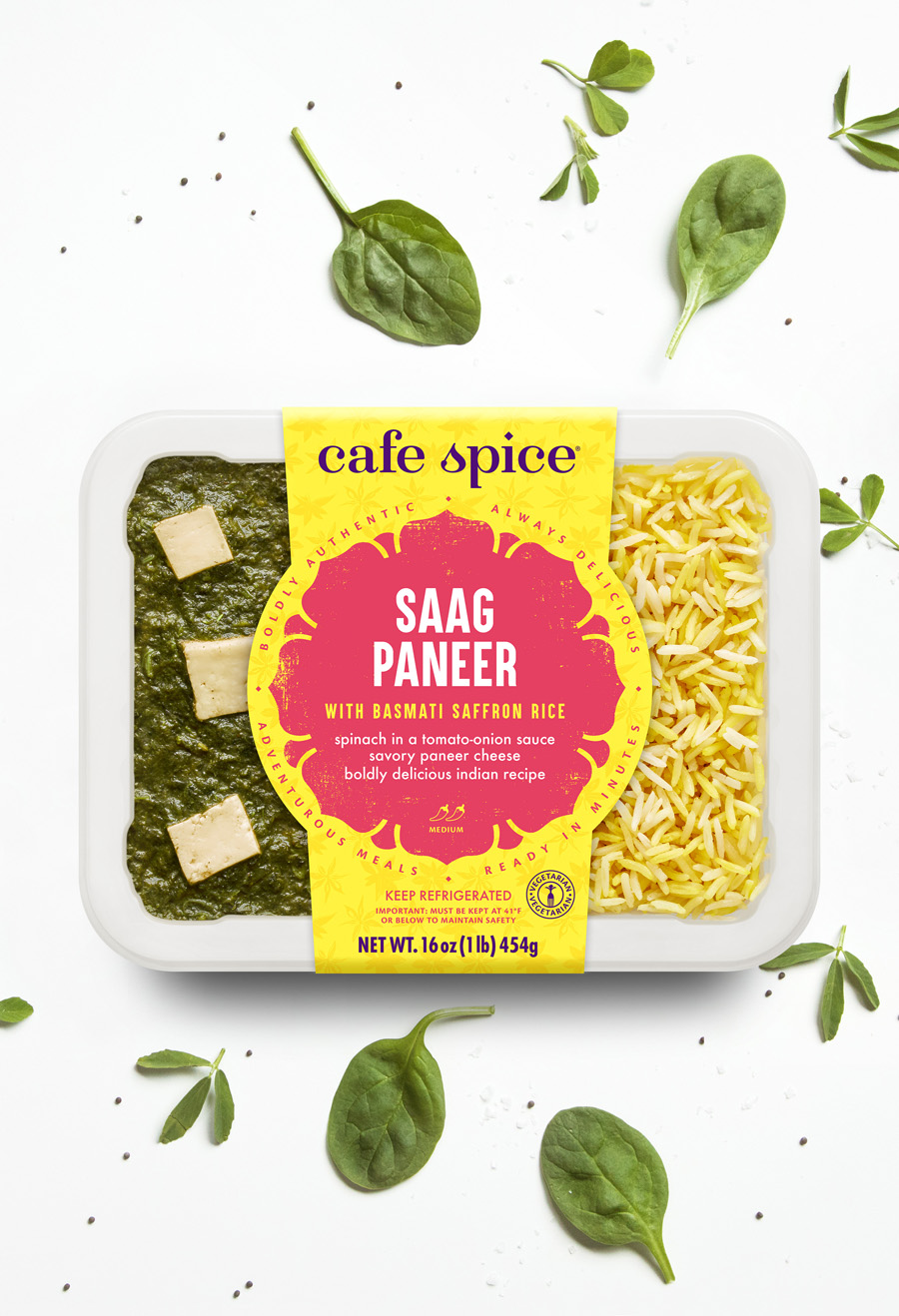 SAAG PANEER: Spinach, Water, Paneer Cheese (pasteurized milk, vinegar), Tomato Puree, Tomatoes, Onion, Spices, Salt, Expeller Pressed Canola Oil, Garlic, Ginger, Garam Masala (spices), Turmeric, Chickpea Flour